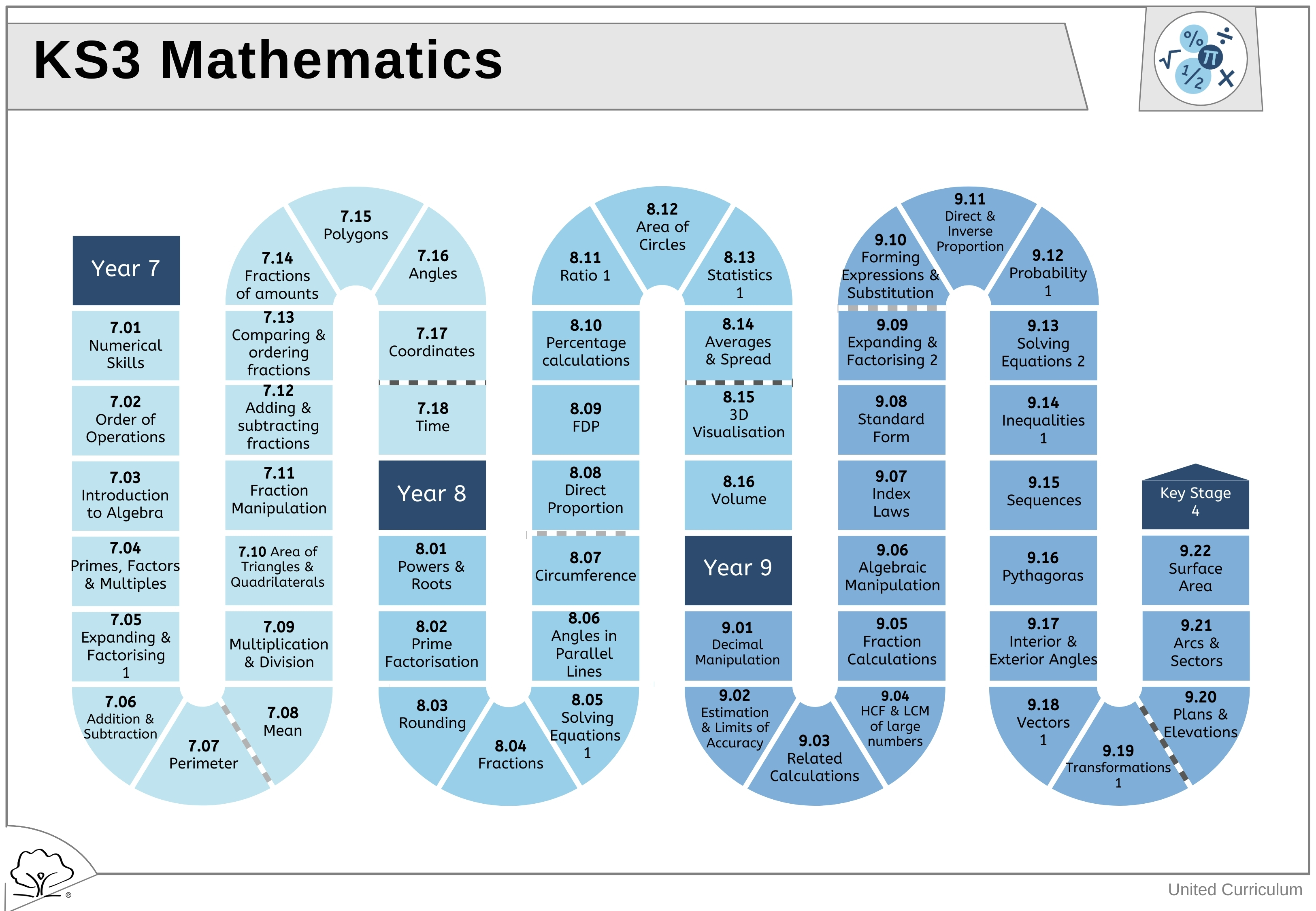 We follow a mastery teaching approach in maths, ensuring that our students have mastered key areas of the curriculum. These topics are built on each year so that our students can confidently access GCSE questions when they begin Key Stage 4.