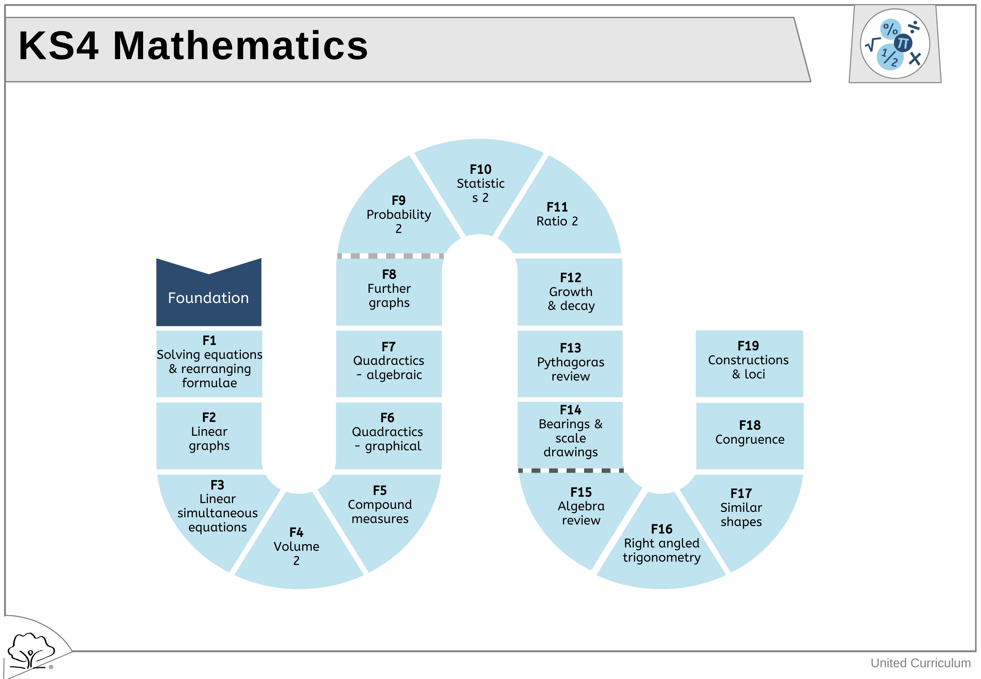 Maths is a linear course, meaning that our students complete all of their assessment at the end of Year 11. There are 3 papers lasting 90 minutes each: 1 Non-calculator and 2 Calculator papers.